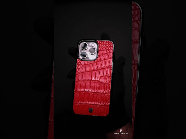 Чехол из натуральной кожи крокодила красного цвета